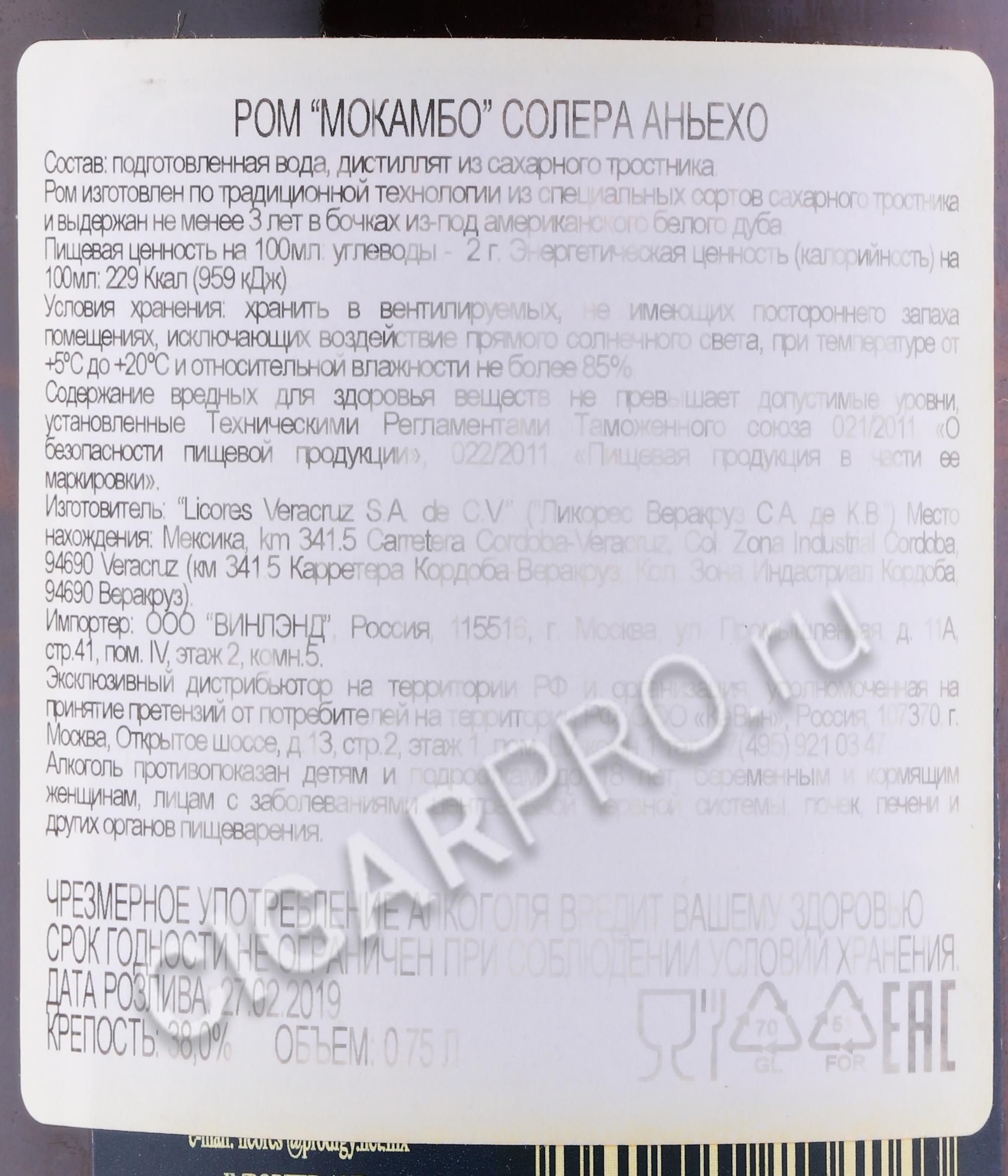 Mocambo Anejo Ром Мокамбо Аньехо 0.75л