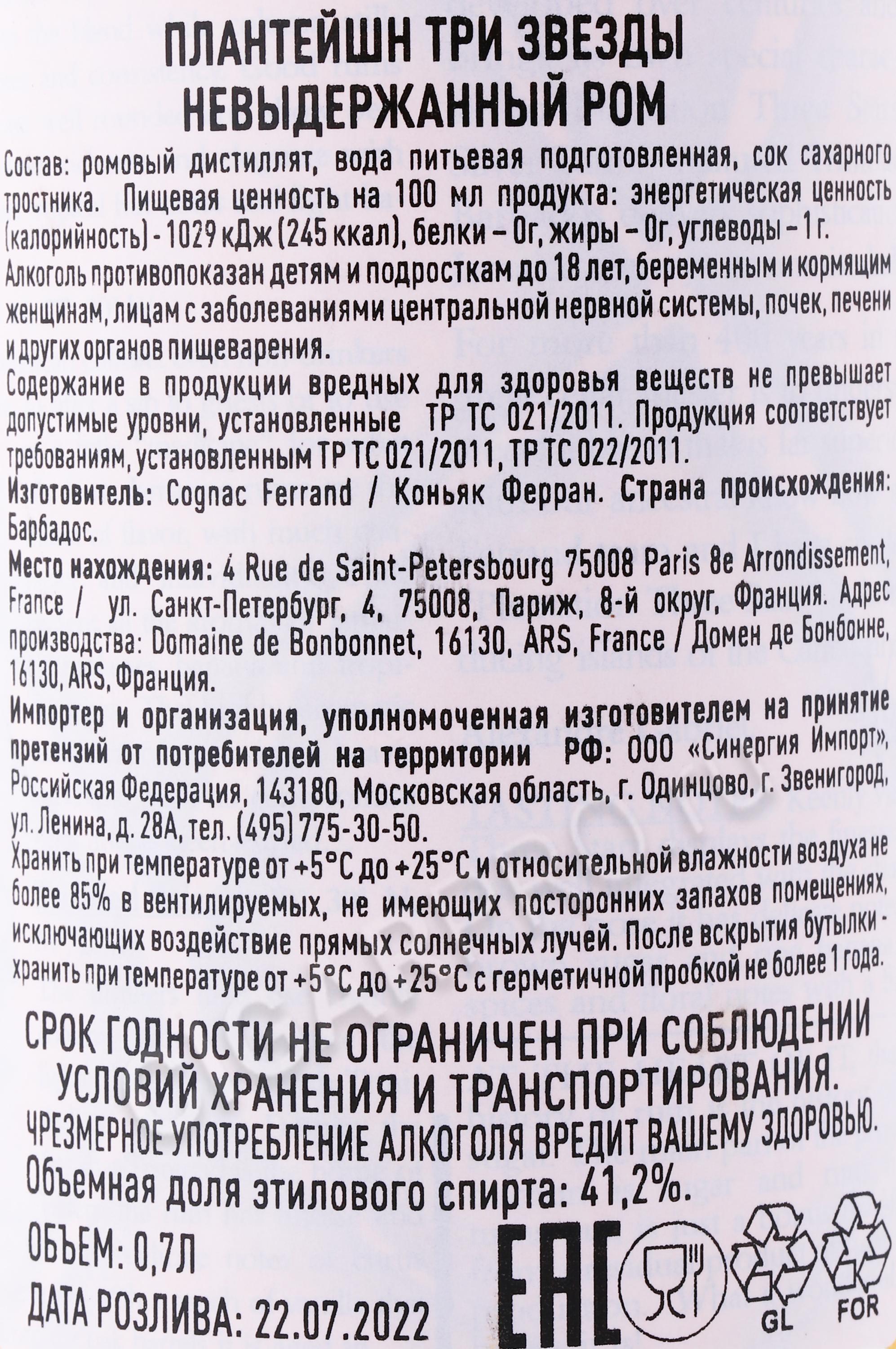 Plantation 3 stars Ром Плантейшн 3 звезды 0.7л