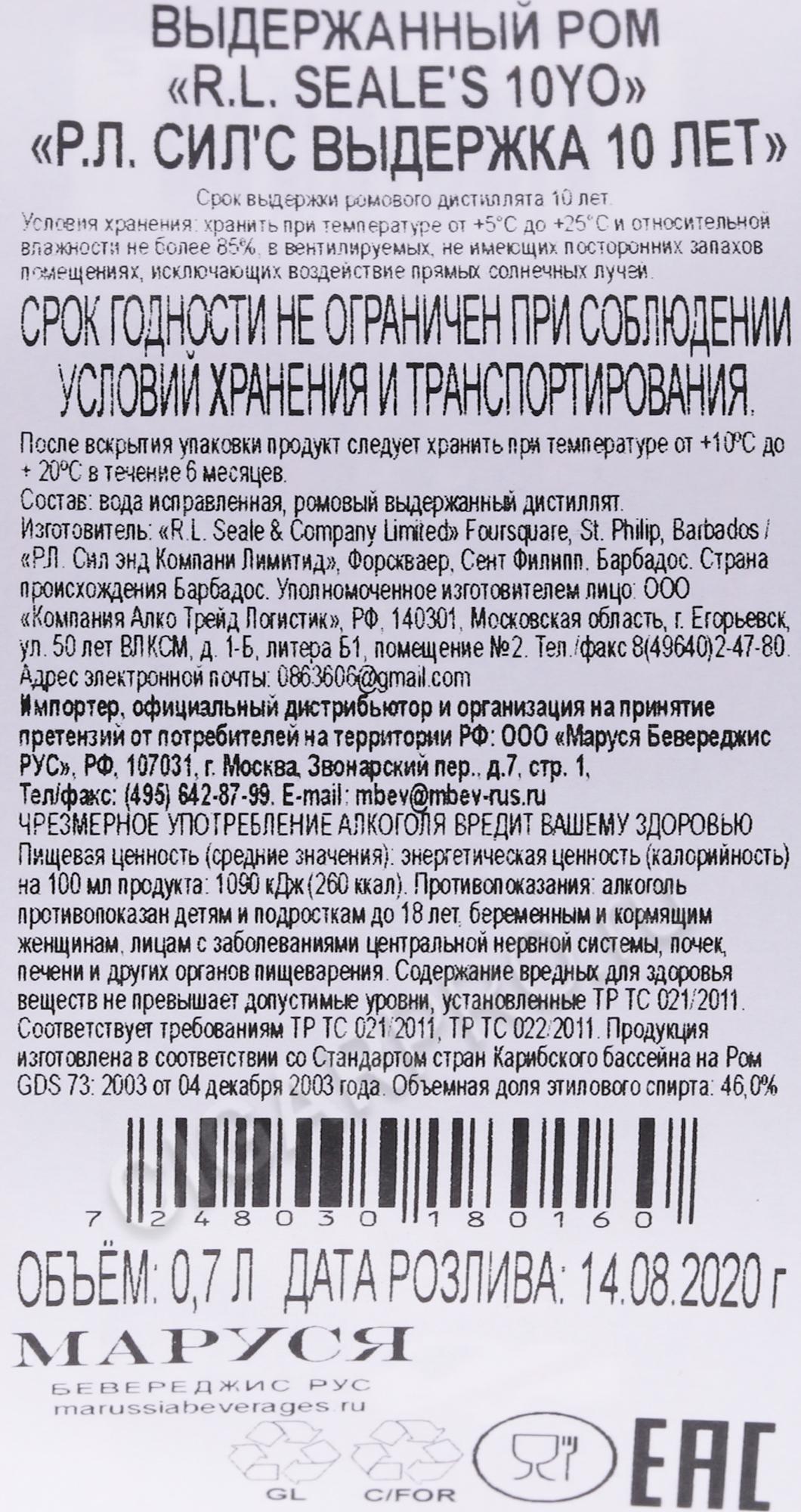 R L Seales 10 years old Ром Р Л Силс 10 лет 0.7л