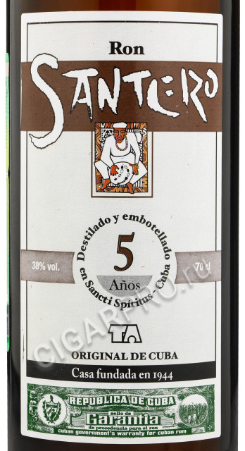 Ром Santero 5 Anos 0,7 л – кубинский крепкий напиток промышленного изготовления, причем его производством занимается старейшая дистиллерия, основанная в далеком 1844 году. Более чем за 1,5 века изготовитель весьма набрался опыта в создании превосходного алкоголя. После традиционной перегонки сброженных продуктов сахарного тростника rum направляется на выдержку в новые емкости из американского дуба объемом, не превышающим 200 литров в течение 5 лет. Ром Сантеро 5 лет разливается по традиционным бутылкам объемом 0,7 литра и характеризуется стандартной крепостью 40 градусов.