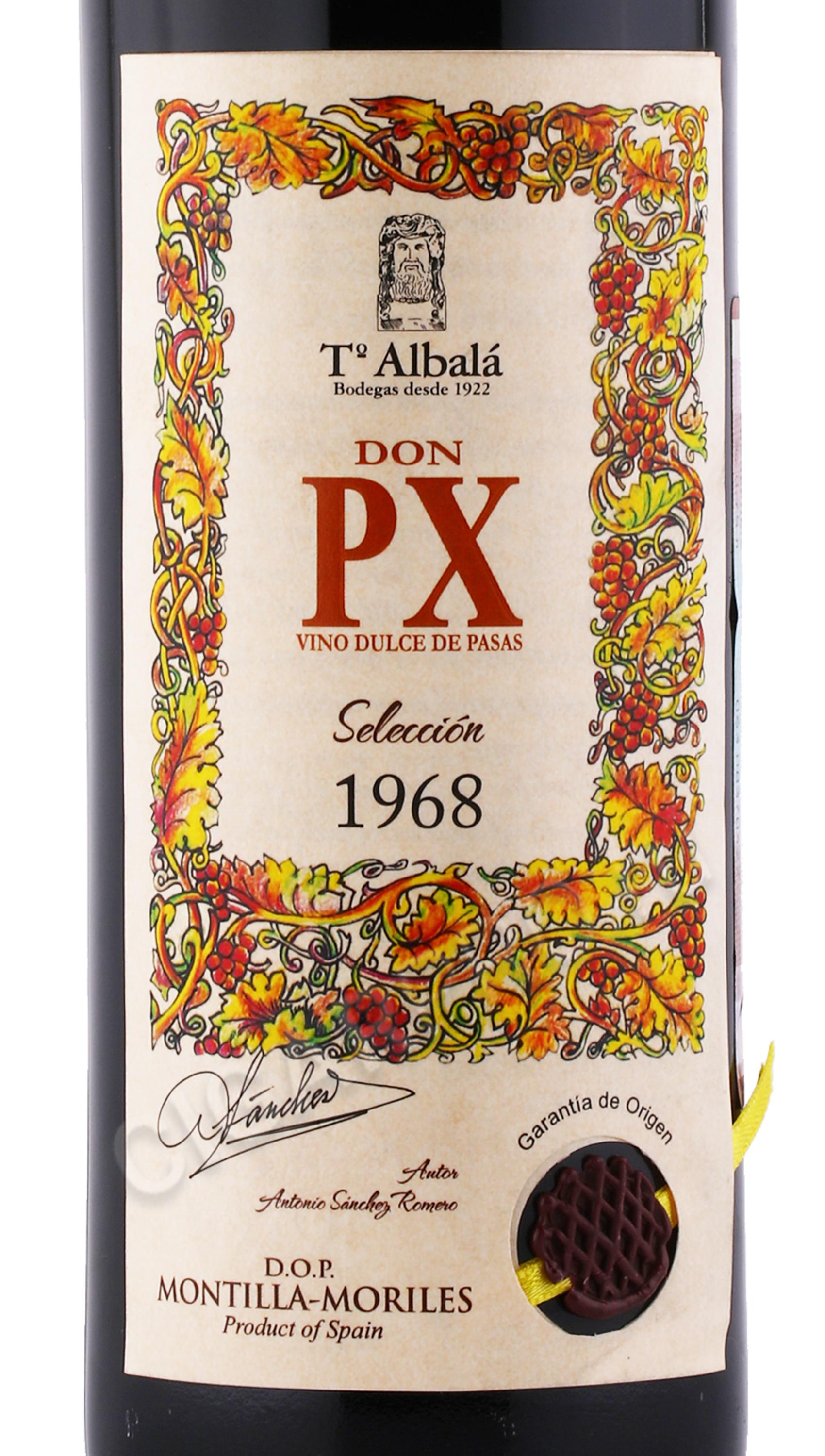 Херес сладкий Toro Albala Don PX Seleccion 1968 г. 0,75 л – выдержанное крепленое вино с коллекционным статусом. Оно сделано из спелых ягод испанского винограда, собранного на плантациях Андалусии, в провинции защищенного географического наименования Монтилья-Морилес. Там же проводилась винификация и выдержка спиртного. В течение 48 лет напиток созревал в бочонках из американского дуба. Винтаж 1968 года выпущен ограниченным тиражом. Вино столь почтенного возраста послужит солидным подарком, например, для именинника того же года рождения.