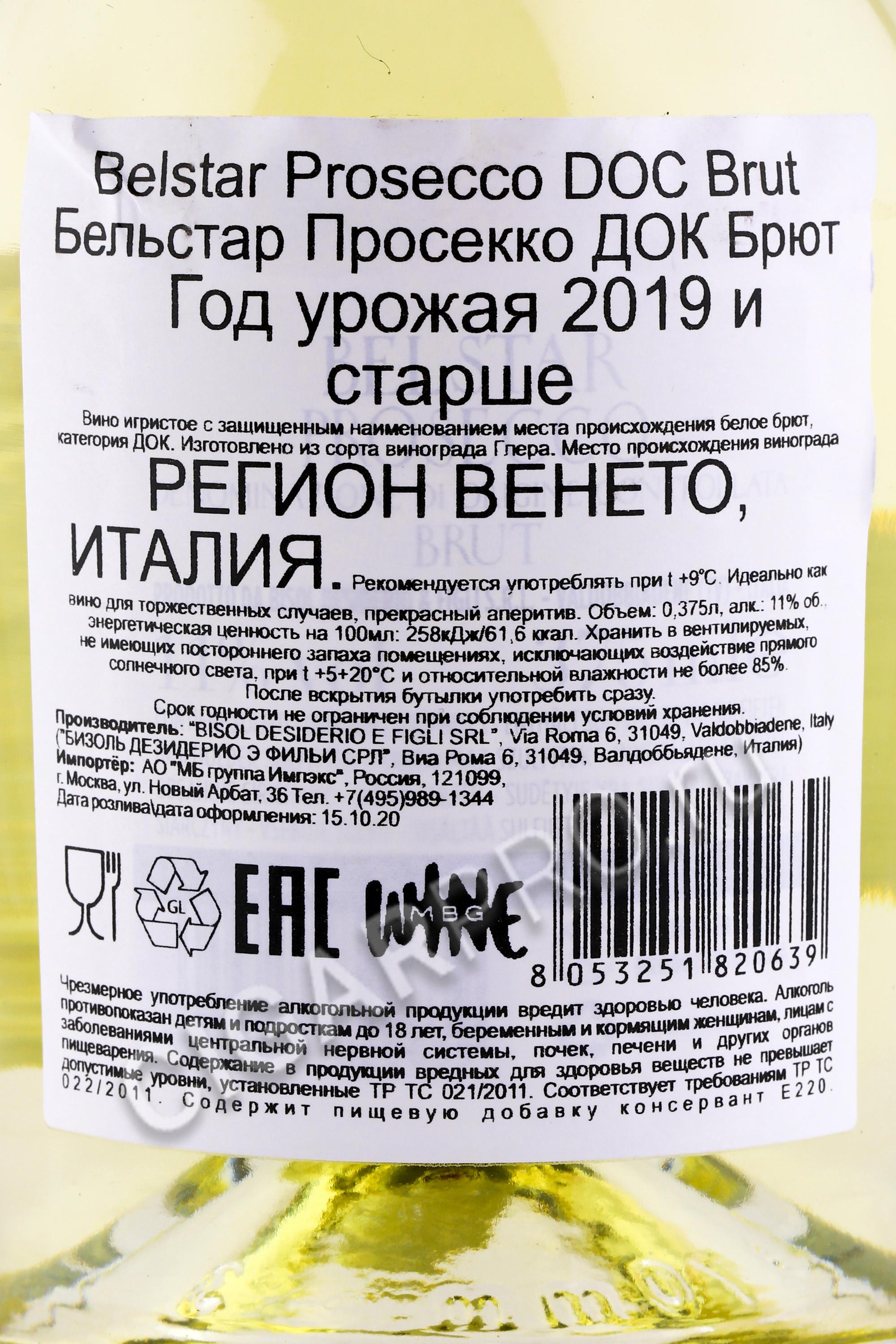- Belstar Prosecco Игристое вино Просекко Бельстар 0.375л