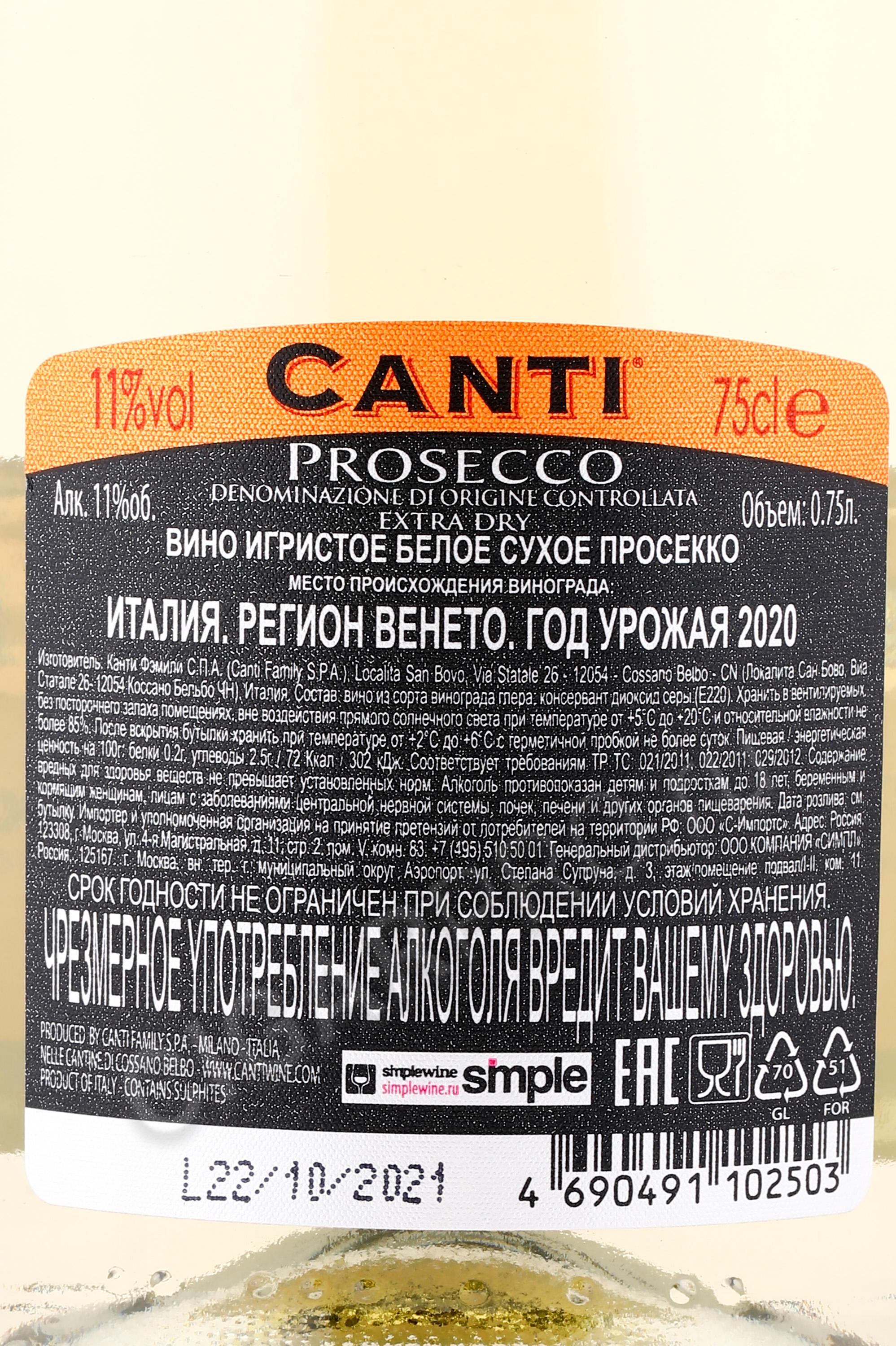Canti Prosecco Игристое вино Канти Просекко 2021 г