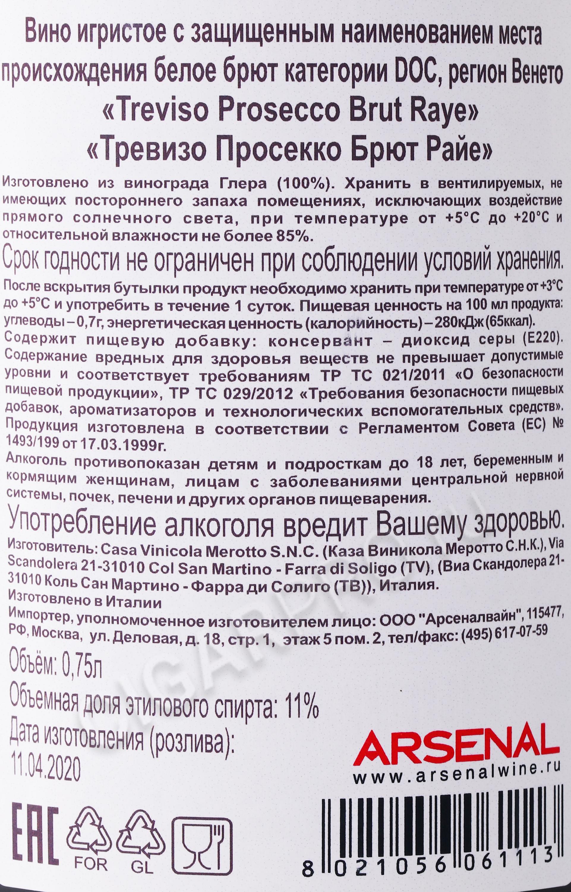 - Merotto Raye Prosecco Игристое Вино Меротто Райе Просекко 0.75л