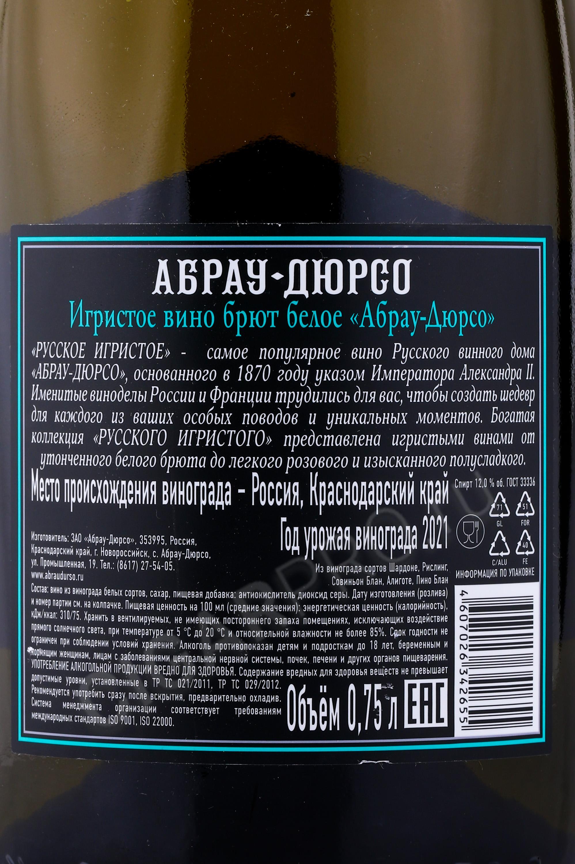Игристое вино Абрау Дюрсо белое брют 0.75л