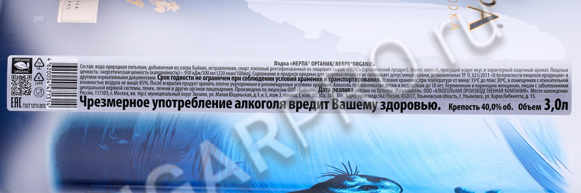 Водка Нерпа Байкал 3л в подарочной упаковке