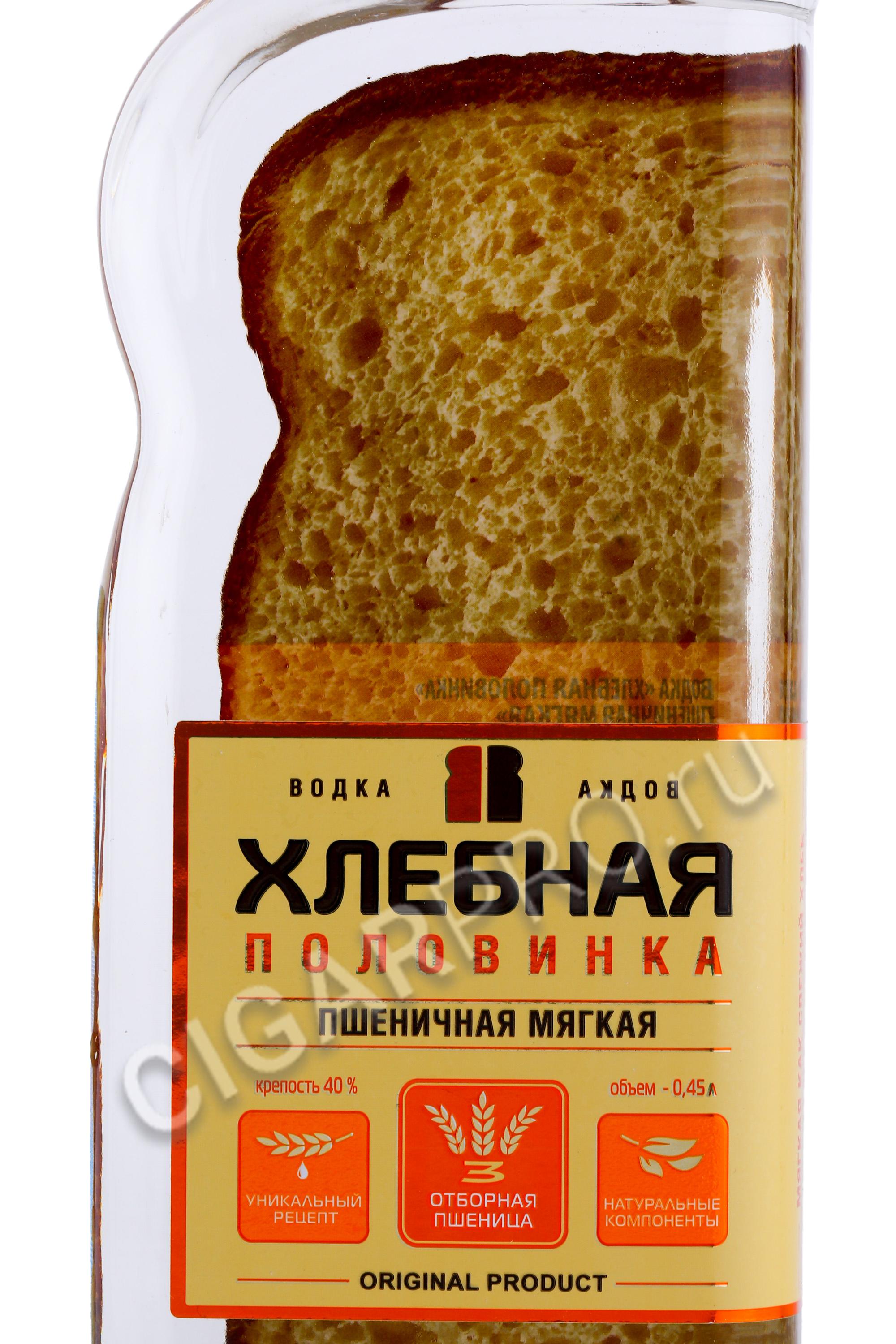Водка Хлебная Половинка Пшеничная Мягкая 0,45 л обладает неповторимым мягким вкусом благодаря особой рецептуре. Она изготавливается из пшеничных спиртов класса Люкс с добавлением настоев сухарей и пророщенного зерна. Бутылка, в которой продается напиток, сделана таким образом, что с лицевой стороны и сбоку напоминает ломоть белого хлеба, что соответствует названию спиртного. Емкость закрывается крышкой из алюминия и не имеет дозатора.