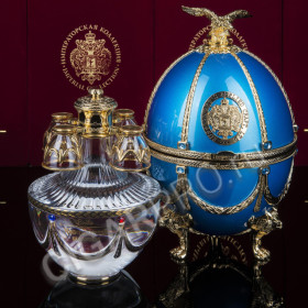 Водка Императорская Коллекция Супер Премиум как нельзя лучше подходит для эксклюзивного, статусного презента. Премиальный напиток разливают в изящный графин, выполненный из венецианского стекла и помещенный в футляр в виде ювелирного яйца Фаберже. Эта упаковка сделана вручную и украшена позолотой, эмалью и вставками из самоцветов. В комплект входят 4 стеклянных стопки. Для создания водки отбирается сортовая пшеница, а полученные из нее дистилляты фильтруются по уникальной технологии, предусматривающей применение березового угля, серебра и мембранной системы. Напиток разбавляют до 40% чистой водой из Ладожского озера.
