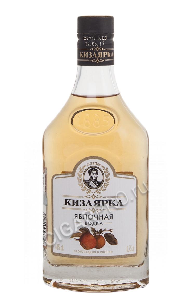 Яблочная Кизлярка 0.25л – это новый оригинальный продукт, который разработан специалистами завода. Водка Яблочная Кизлярка 0.25л имеет кристально-прозрачный цвет, характеризуется мягким вкусом и приятным ароматом. Водка Яблочная Кизлярка 0.25л изготавливается из отборных яблок, из которых получают плодовый дистиллят. Напиток не содержит каких-либо красителей и ароматизаторов, он характеризуется выраженным вкусом и ароматом спелых яблок, крепость – 40 градусов. Водка Яблочная Кизлярка разливается в оригинальные стеклянные бутылки объемом 0.25л, которые украшены яркой бумажной этикеткой. Яблочная водка Кизлярка 0.25l прекрасно сочетается с орехами, сухофруктами, икрой и оливками.