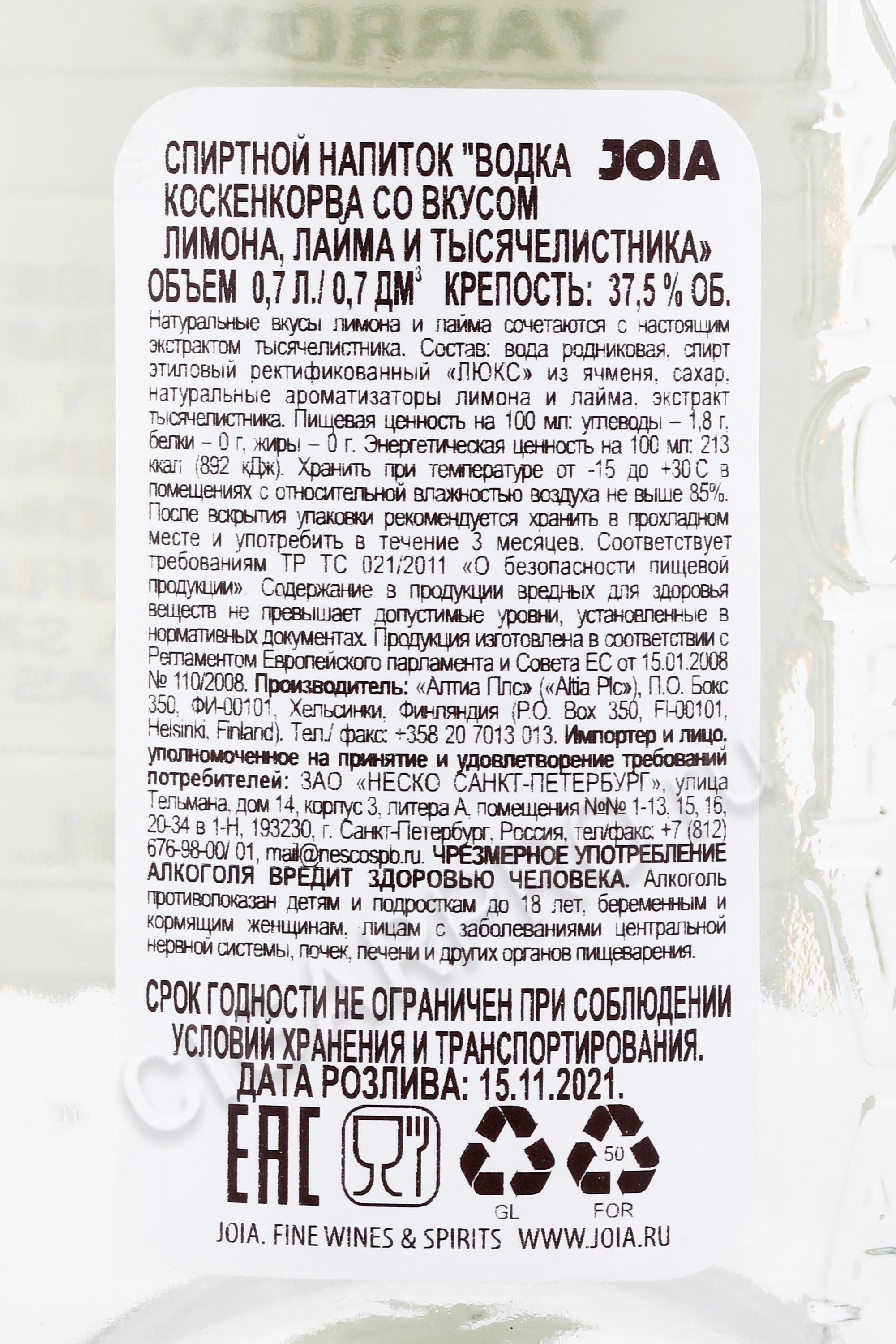 Koskenkorva Lemon Lime Yarrow Водка Коскенкорва со вкусом лимона , лайма тысячилетнека 0.7л