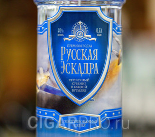 «Русская Эскадра» лимитированная серия посвящённая силе русского оружия, подчеркивается эксклюзивным дизайном этикетки, со сценами военных сражений и дополняется тематическим ювелирным изделием из серебра внутри бутылки.