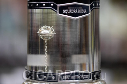 Каждая бутылка дополняется тематическим ювелирным изделием из серебра (мина) внутри бутылки. Каждый покупатель может выбрать свою «Русскую Эскадру» или же собрать полную патриотическую коллекцию, состоящую из уникальных моделей военного самолета, танка, корабля, десантника, дельфина и подводной мины.