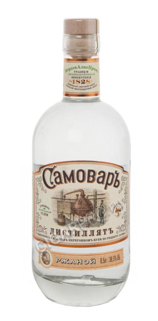 Дистиллят Самовар Ржаной — традиционный напиток русской национальной кухни. Для его производства используется ржаное зерно, из которого получают сусло, перегоняемое в медных кубах старинной конструкции. В основе напитка лежит рецепт XIX века, применяемый при создании хлебного вина. Выгнанный спирт фильтруют через древесный уголь и смешивают с водой до крепости 38,4%. Фасуется водка в 500-милилитровые бутылки.