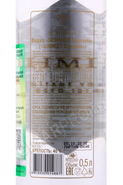 Schmidt Supreme Водка Шмидт Суприм 0.5л