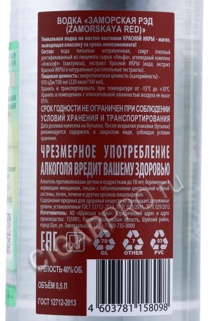 Производитель АО «Шуйская водка» при современных водочных заводов, решил креативно развить свою индустрию, создав новую линию, дистиллят из красной икры. Как утверждает производитель, уникальная водка на настое вытяжки красной икры - магия, выводящая классику за грань невозможного.