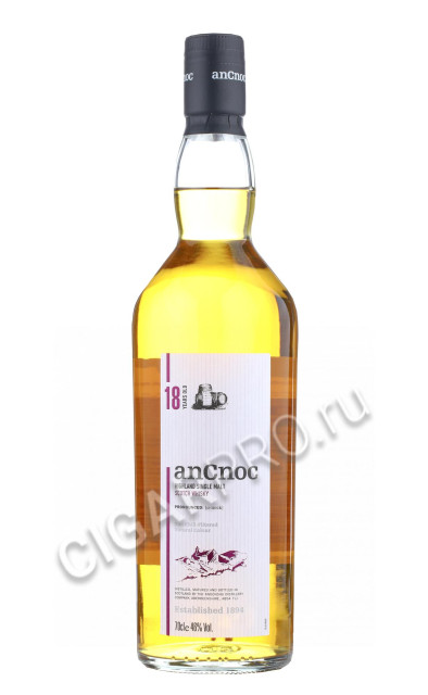 AnCnoc 18 Year Old выдерживается в бывших хересных бочках из испанского дуба и в бочках из под бурбона из американского дуба и разливается в бутылки в самой естественной форме, не подвергнутый холодной фильтрации и не окрашенный. В результате этого напиток может развить легкую мутность с добавлением воды или при низкой температуре. Это помутнение является естественной характеристикой виски, который не фильтруется в холодном состоянии, что придает богатство вкуса!