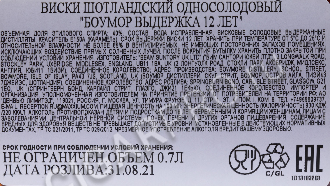 Bowmore 12 years Виски Боумор 12 лет 0.7л в подарочной упаковке