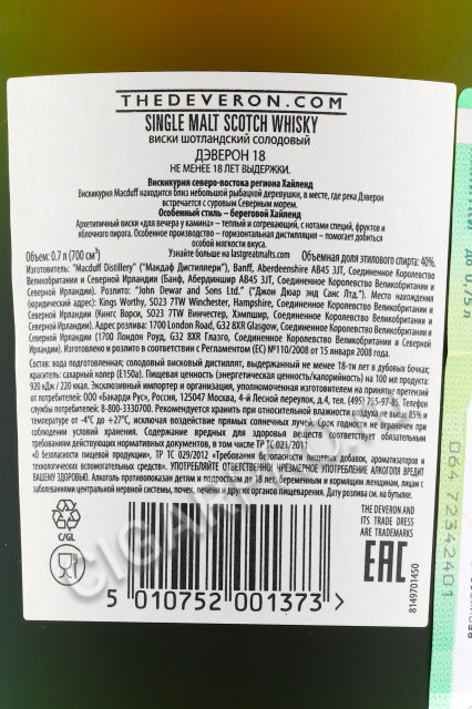 Deveron 18 Years Old Виски Дэверон 18 лет 0.7л