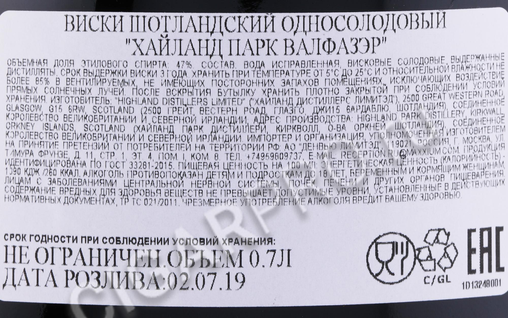 Highland Park Valfather Виски Хайланд Парк Валфазэр 0.7л в подарочной упаковке