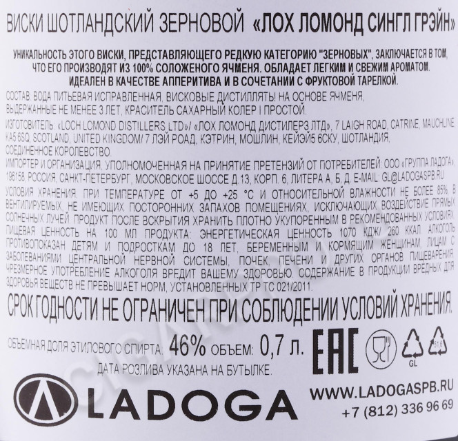 Loch Lomond Single Grain Виски Лох Ломонд Сингл Грэйн 0.7л в подарочной тубе