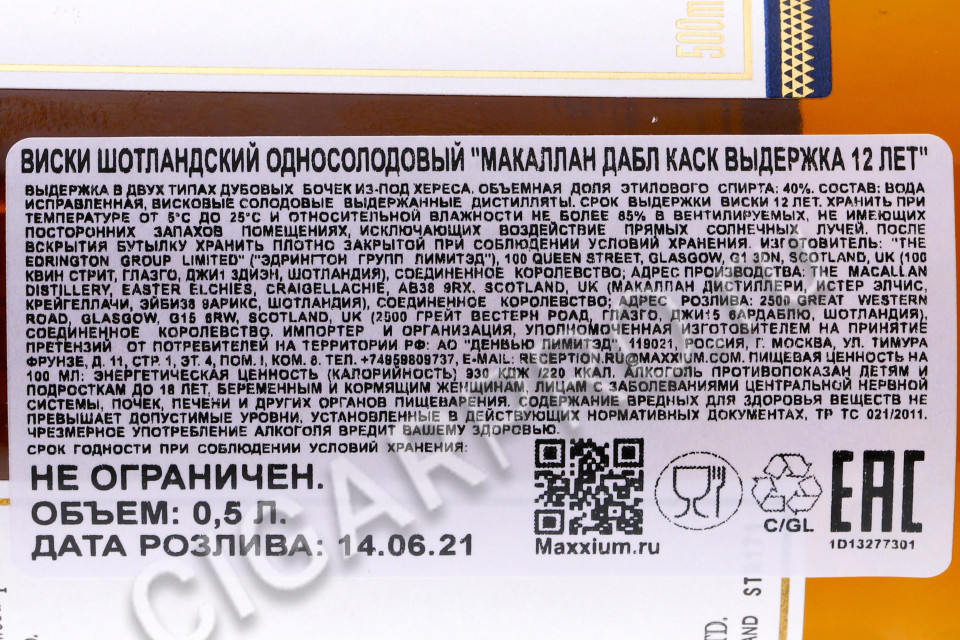 Macallan Double Cask 12 Years Old Виски Макаллан Дабл Каск 12 лет 0.5л