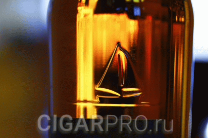На лицевой части бутылки изящно выступает гравировка с изображением символа бренда — лодка.