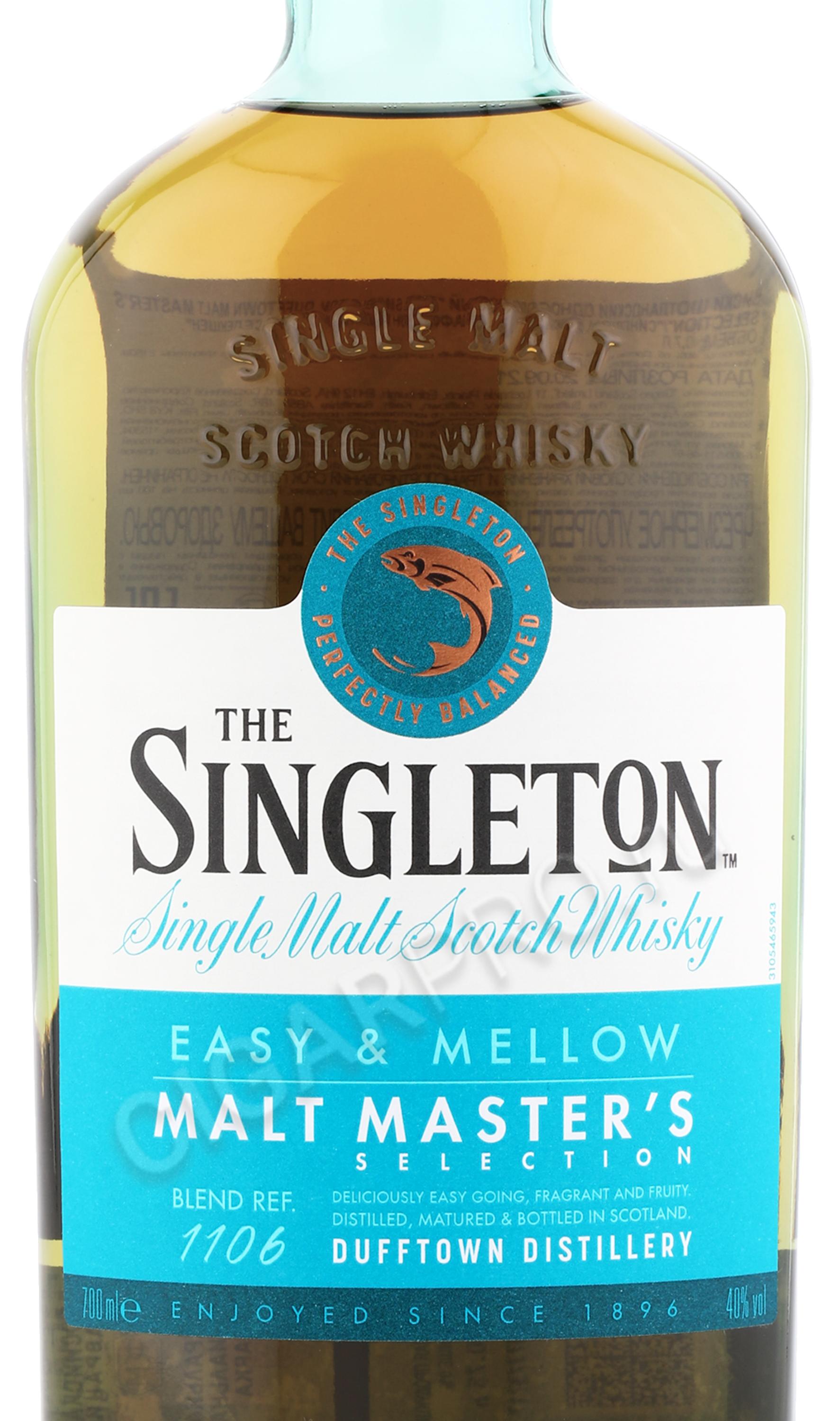 Singleton Dufftown Malt Master Selection 0,7 л — классический односолодовый сорт из шотландского Спейсайда. Напиток крепостью 40% производится из тщательно отобранных спиртов, которые были последовательно выдержаны в новых бочках из американского дуба, изготовленных вручную, затем в деревянных емкостях из-под бурбона, а в финале провели некоторое время в барриках из-под хереса. Купаж из дистиллятов составлял именитый мастер Крейг Уилсон. Виски Синглтон Даффтаун Молт Мастерс Селекшен без холодной фильтрации был разлит в стильные бутылки объемом 0,7 л.