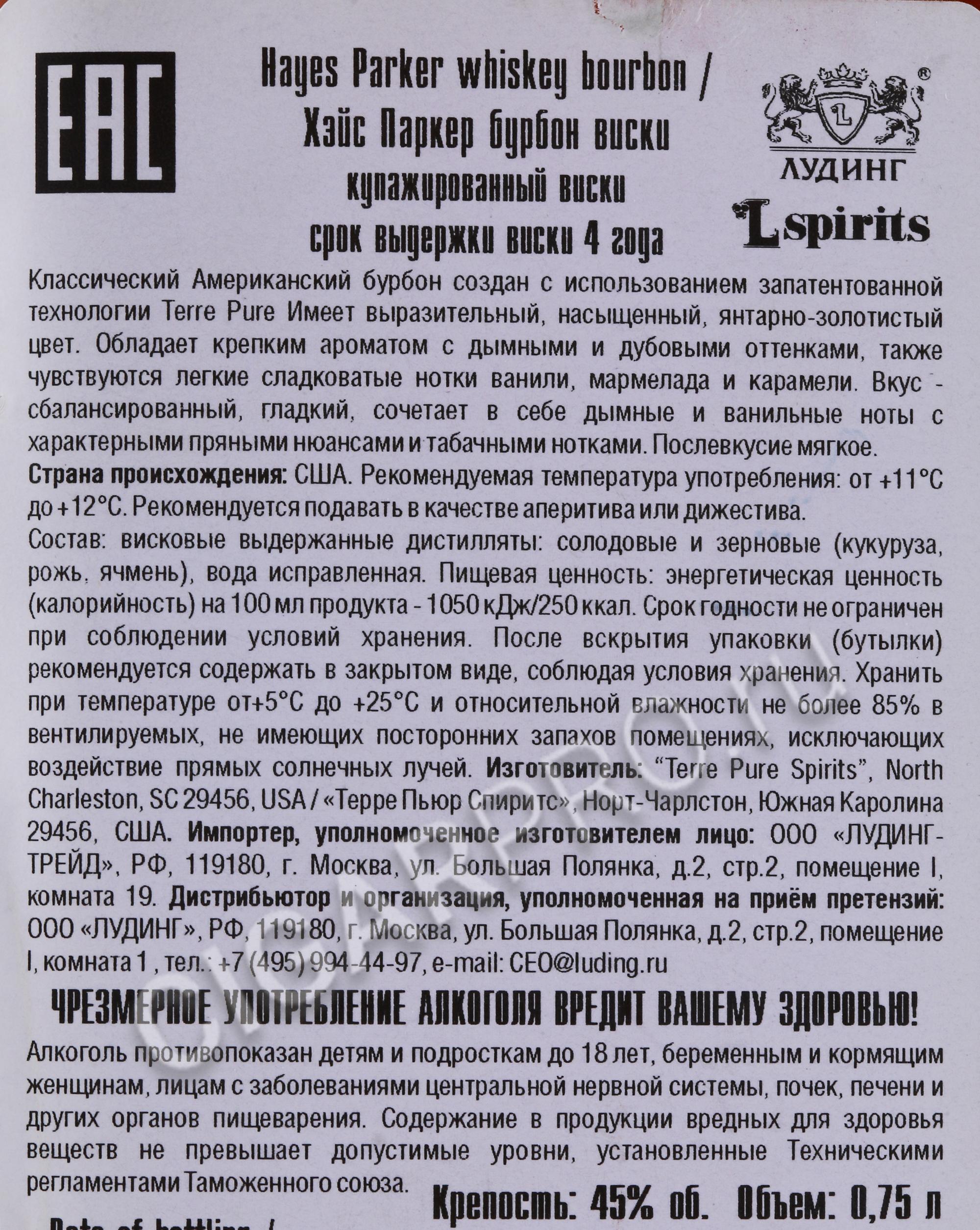 Hayes Parker Reserve Виски Хэйс Паркер Бурбон 0.75л