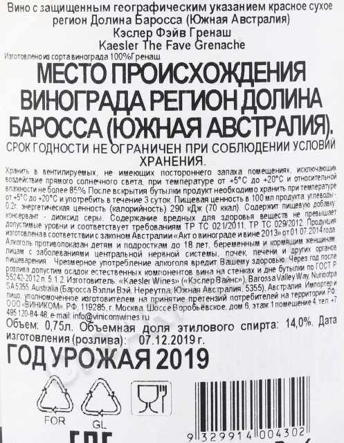 Kaesler The Fave Вино Кэслер Фэйв 0.75л