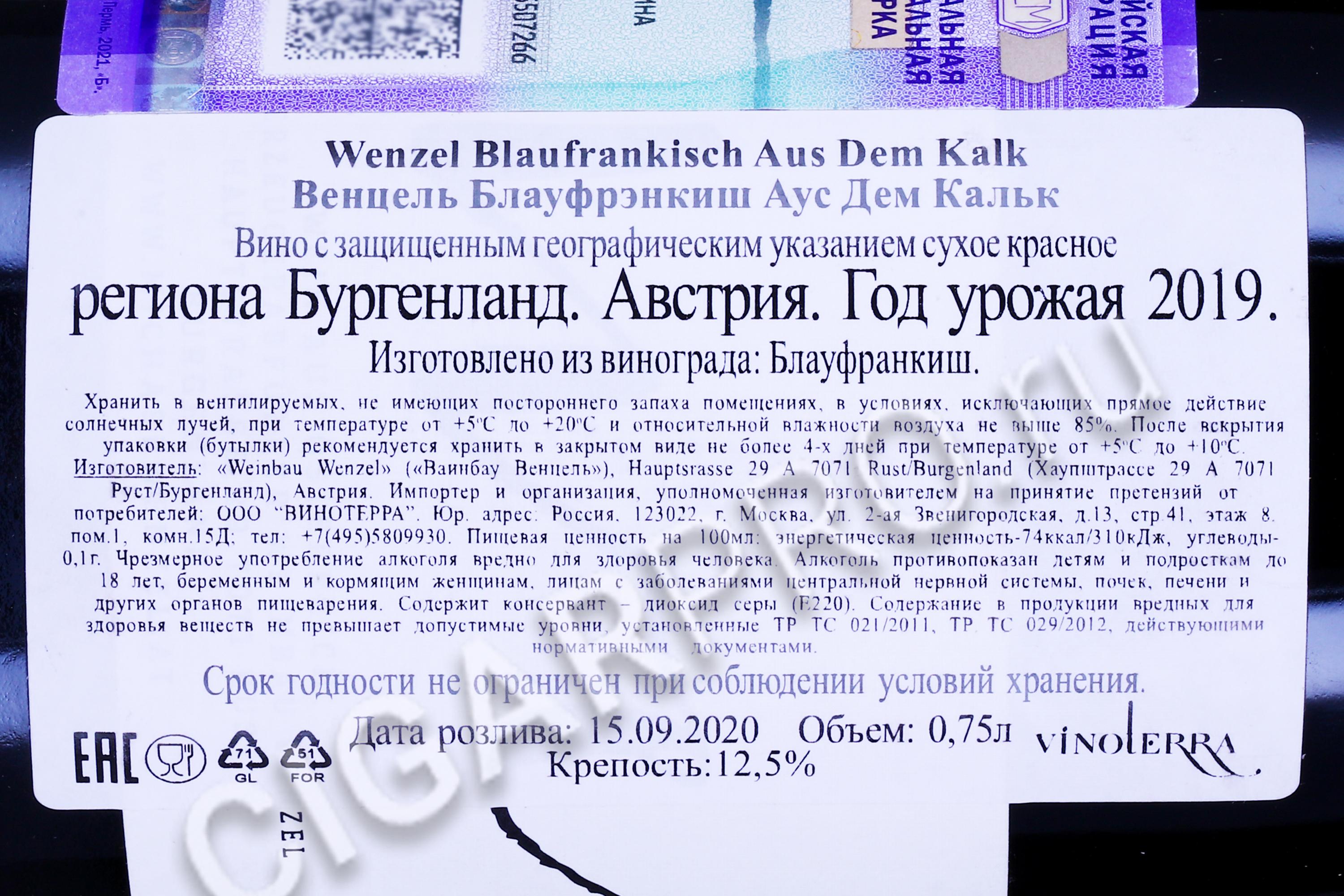 - Wenzel Blaufrankisch Aus dem Kalk Вино Венцель Блауфрэнкиш Аус Дем Кальк 0.75л