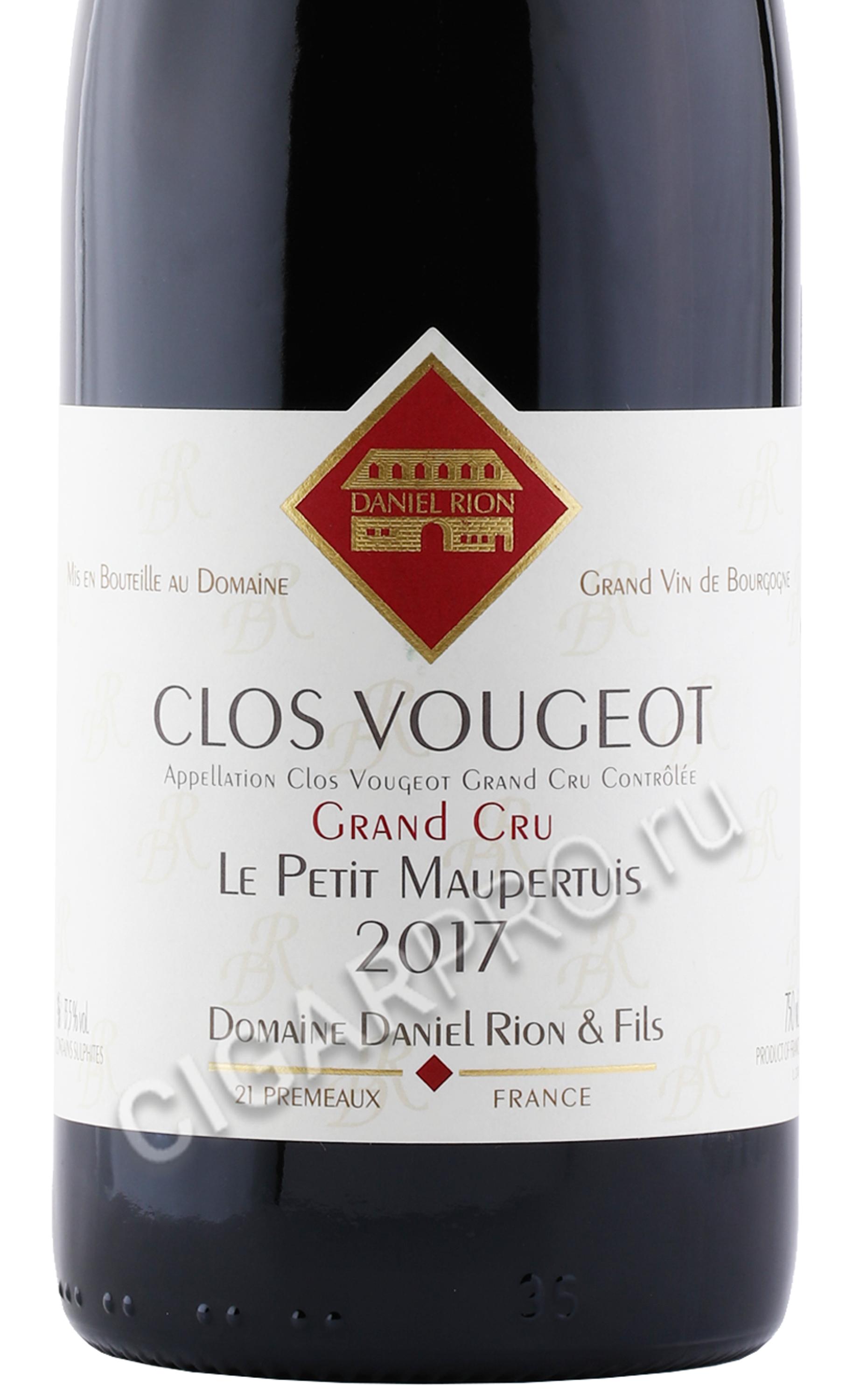 Domaine Daniel Rion & Fils Clos Vougeot Grand Cru 2017 Вино Кло Вужо Гран Крю Домэн Даниэль 2017г 0.75л