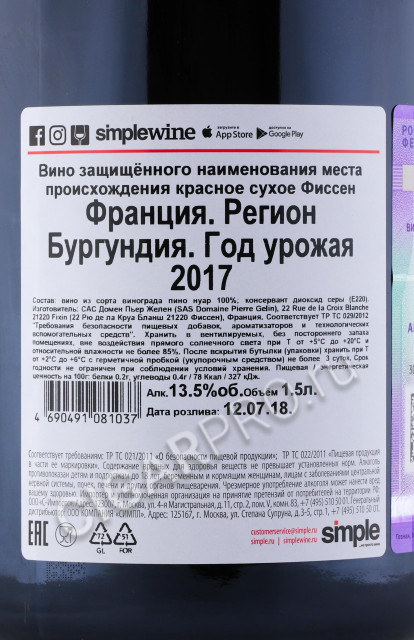 Domaine Pierre Gelin Fixin AOC 2017 Вино Фиссен Домен Пьер Желен 2017г 1.5л