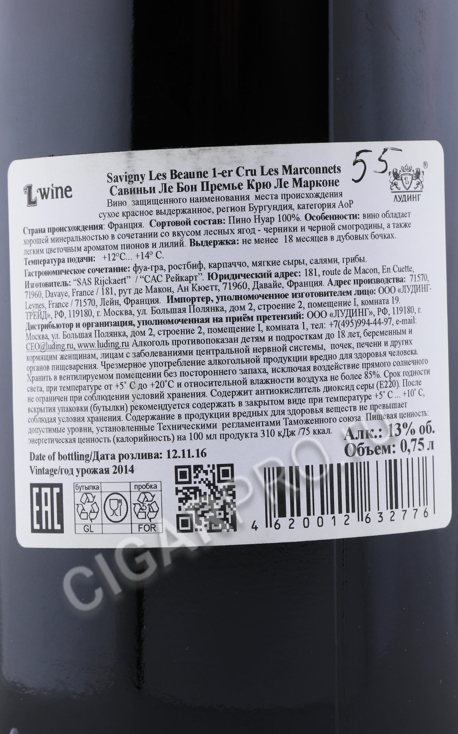 - Domaine Rijckaert Savigny les Beaune Cru Les Marconnets Вино Савиньи Ле Бон Премье Крю Ле Марконе Рейкарт 0.75л