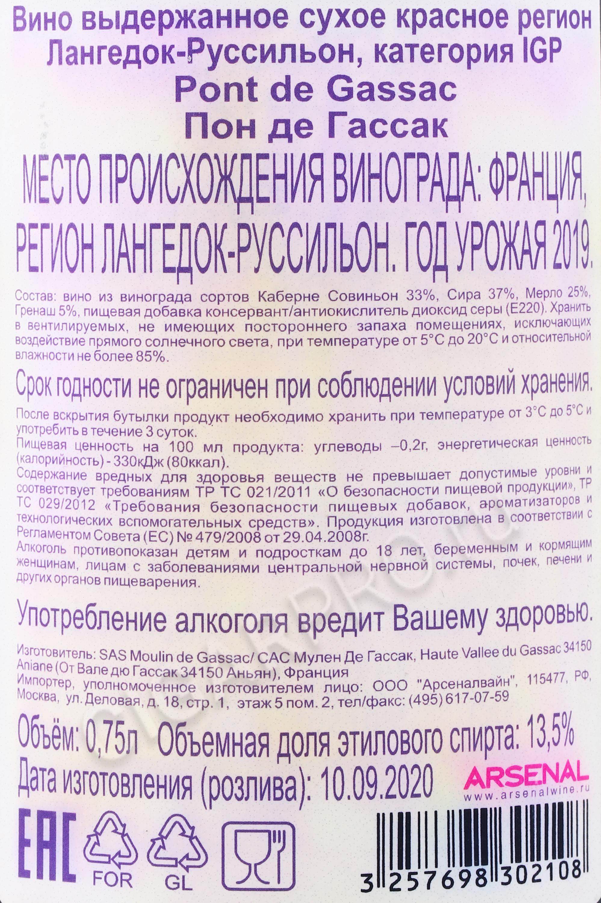 Pont de Gassac Rouge Pays d Herault Вино Пон де Гассак Руж 0.75л