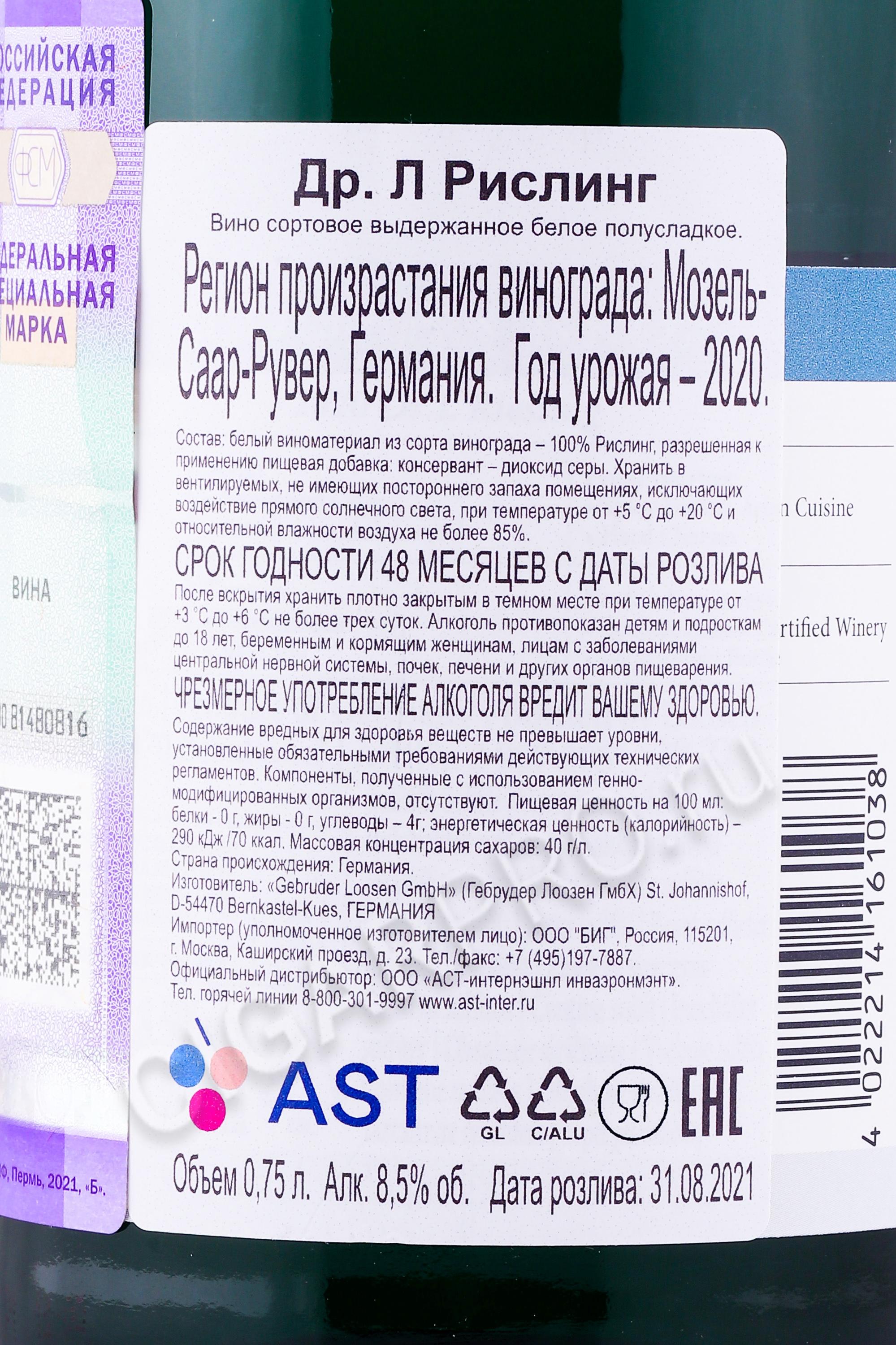 Dr Loosen Riesling Qualitatswein Вино Лоозен Др. Рислинг Квалитетсвайн 0.75л