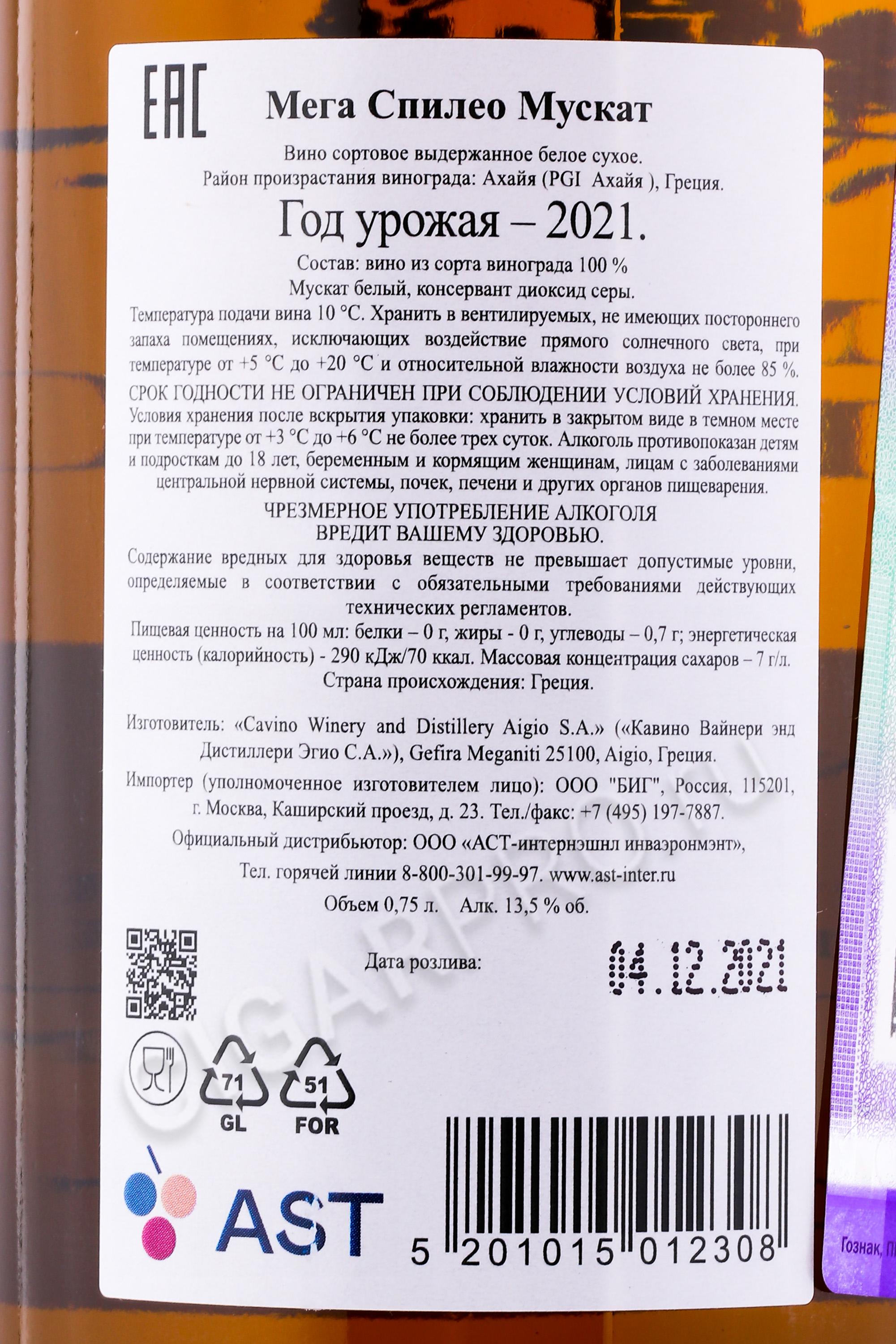 - Mega Spileo Moschato Вино Мега Спилео Мускат 0.75л