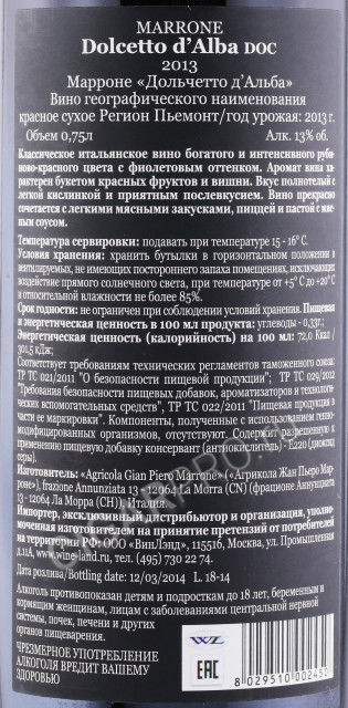 - Marrone Dolcetto d Alba DOC Вино Марроне Дольчетто д Альба 0.75л