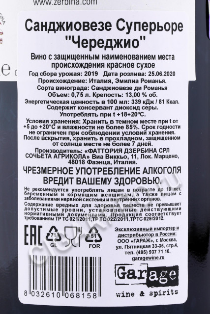 Fattoria Zerbina Sangiovese di Romagna Superiore Ceregio Вино Санджиовезе ди Романья Суперьоре Череджио 0.75л