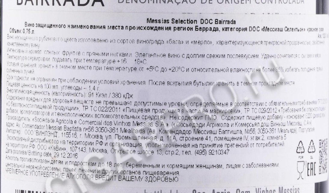 Messias Selection DOC Bairrada 2012 португальское вино Месиаш Селектьон ДОК Беррада 2012