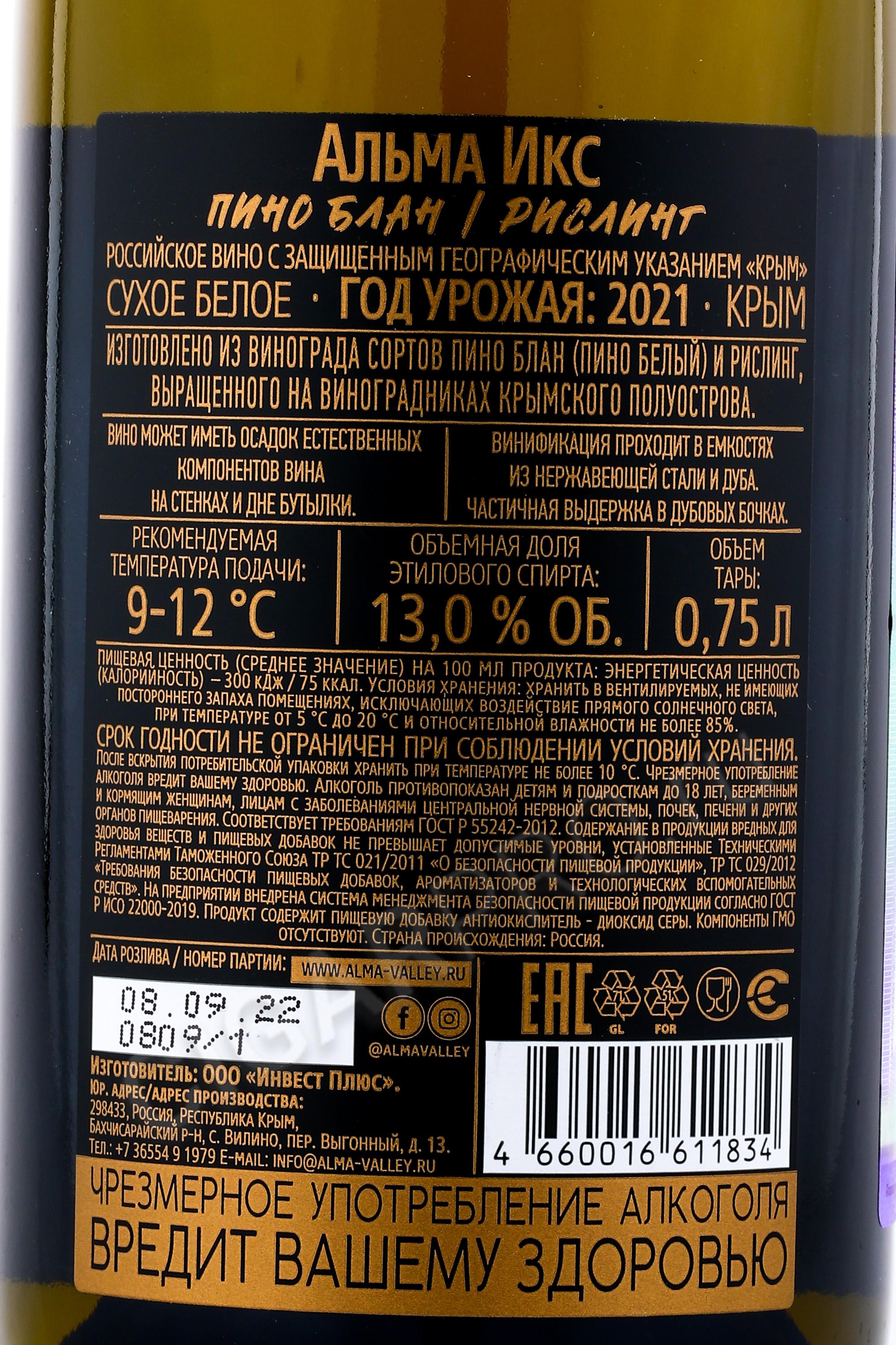 Alma X Pinot Blanc Riesling Вино Альма ИКС Пино Блан Рислинг 0.75л