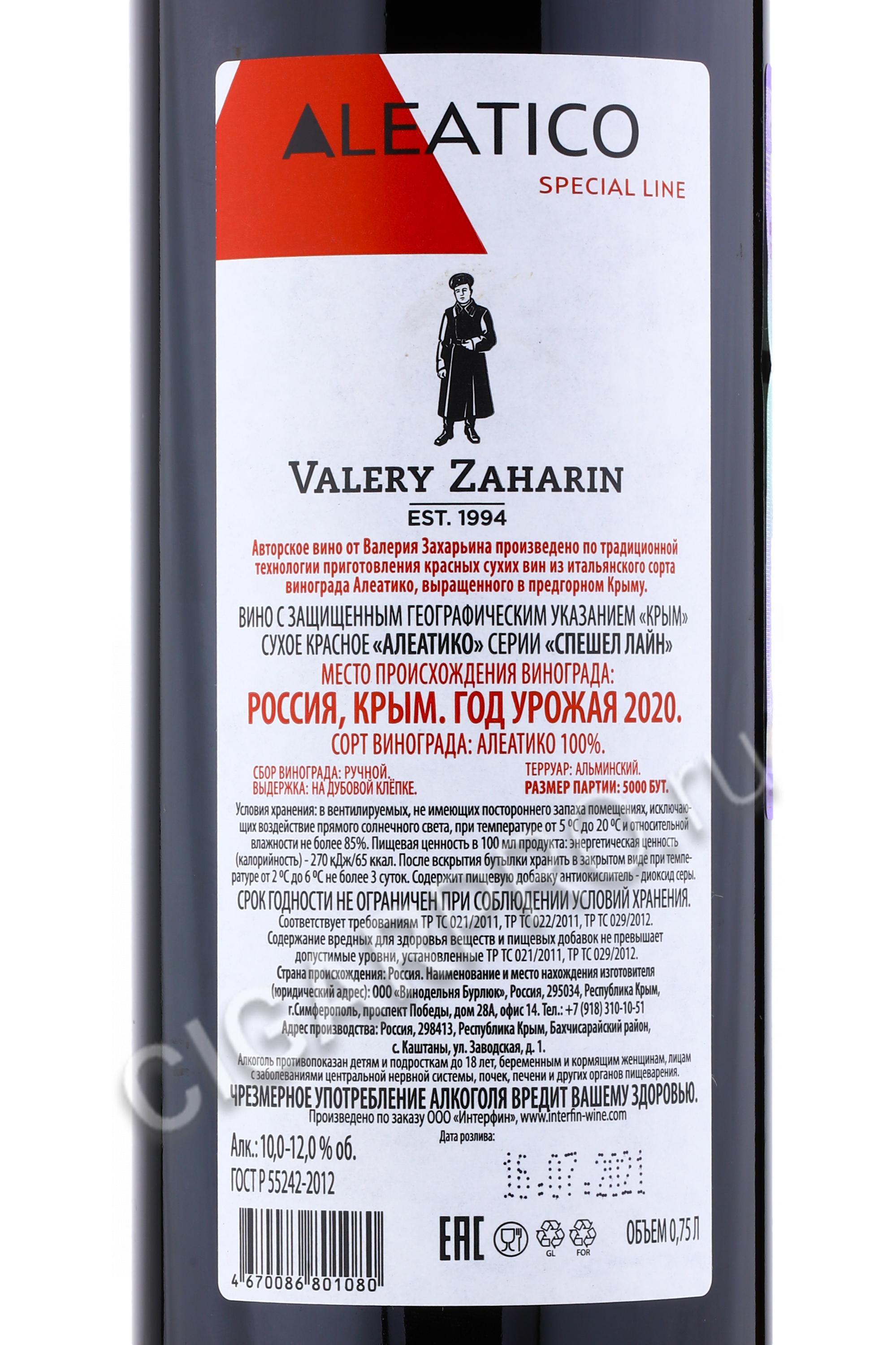 Valery Zaharin Aleatico Вино Алеатико серии Спешел Лайн 0.75л