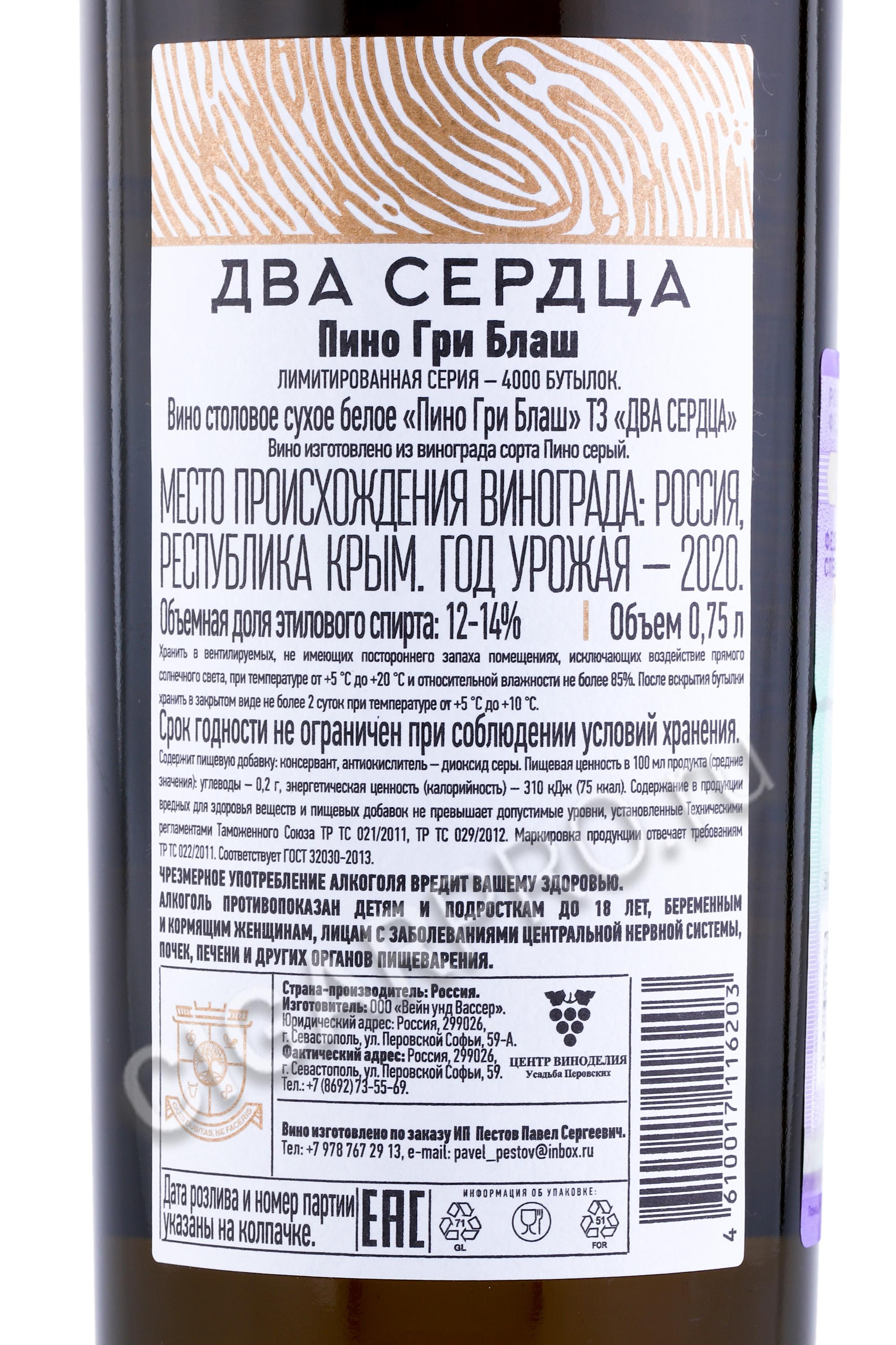 Вино Пино Гри Блаш ТЗ Два Сердца 0.75л
