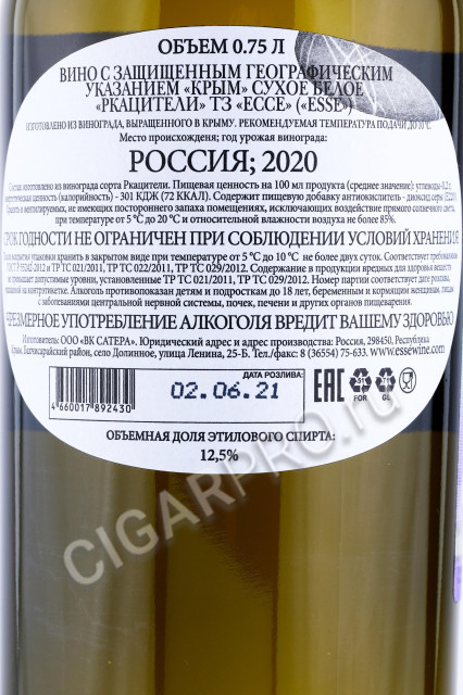 Вино Эссе Ркацители ( Esse Rkatsiteli ).