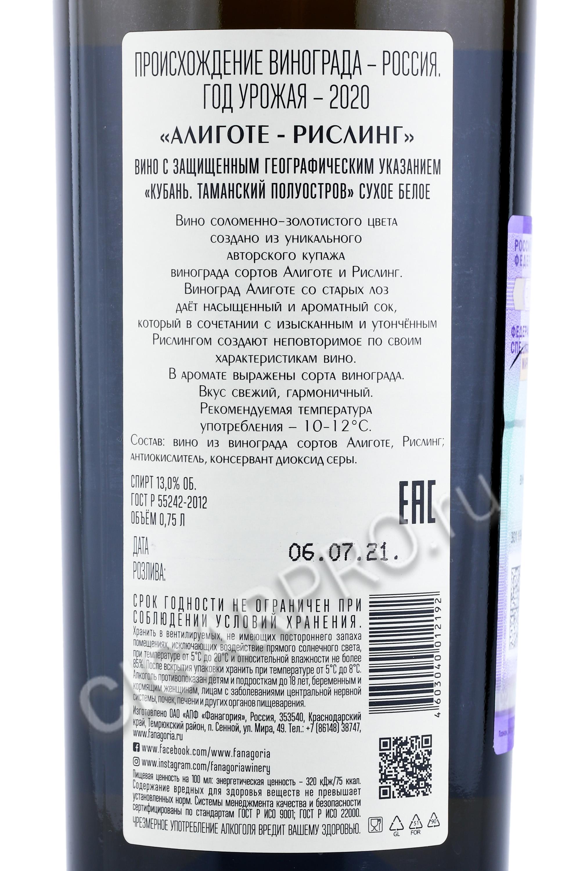 Aligote-Riesling Российское вино Алиготе-Рислинг