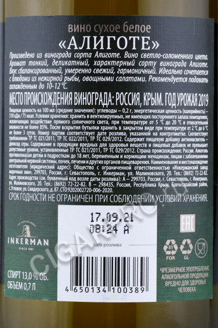 - Inkerman Aligote Вино Инкерман Алиготе 0.7л
