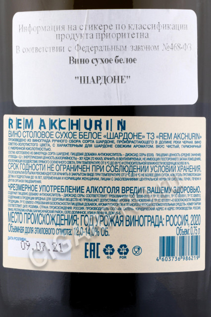 Rem Akchurin Chardonnay Вино Шардоне Рэм Акчурин 0.75л