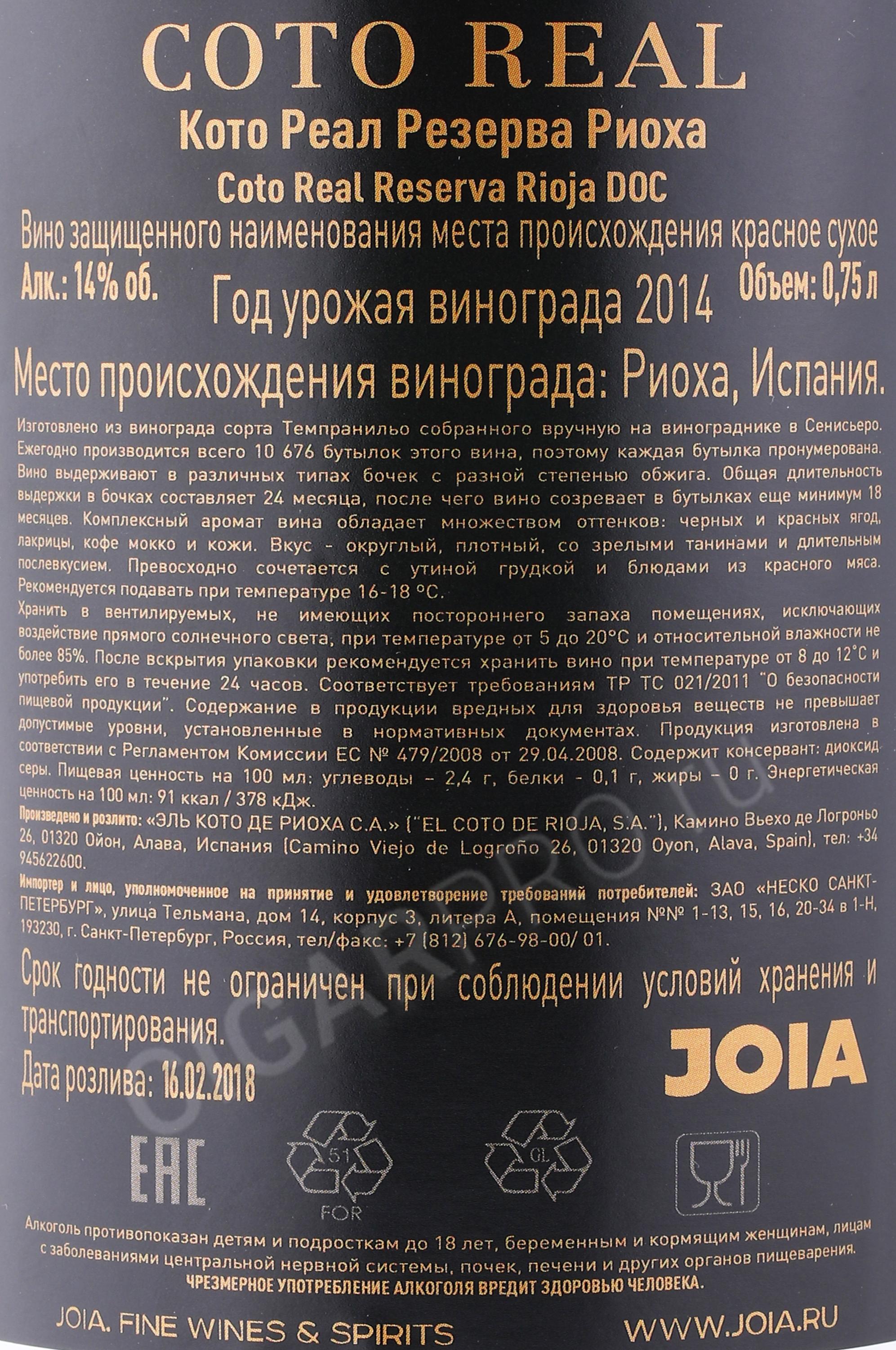 El Coto de Rioja Coto Real Reserva Испанское вино Кото Реаль Ресерва