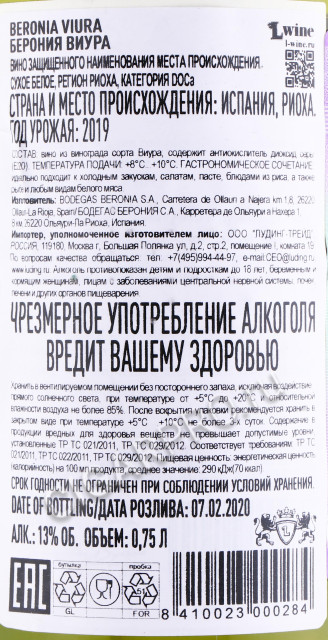 Beronia Blanco De Viura Вино Берония Бланко де Виура 0.75л