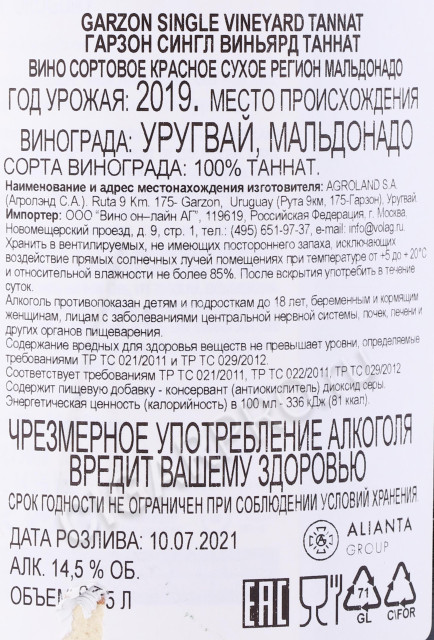 Garzon Tannat Вино Гарзон Таннат 0.75л