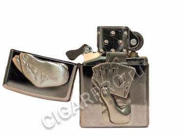 Зажигалка Zippo – легендарная американская ветрозащищенная зажигалка с пожизненной гарантией. Она изготавливается в одном из штатов США – Пенсильвании, в городе Брэдфорд фирмой Zippo Manufacturing Company с 1933 года. Зиппо обладает прямоугольной формой, корпусом из металла (литий, латунь, серебро, медь, титан, золота) и легкой для открывания одной рукой подпружиненной крышечкой, при открытии или закрытии которой раздается специфический щелчок, который подтверждает оригинальность изделия. Во внутреннем баке для зажигательной смеси располагаются в роли наполнителя ватные шарики, фитиль, кремень и другие элементы, большинство из которых являются сменными. Фитиль защищен от боковых порывов ветра особыми стенками с рядом отверстий. Зажигалка Zippo в основном производится в классической бензиновой вариации, но с 2007 года осуществляется выпуск газовых версий Blu на основе бутана, которые хоть и имеют свои особенности в устройстве, но главные конструкционные особенности и пожизненная гарантия остались неизменными.